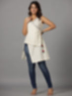 White Cotton Flex Solid With Embroidered Asymmetric Tunic